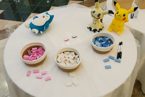 ウェルカムスペースにご用意された3色のLEGOのブロック♡