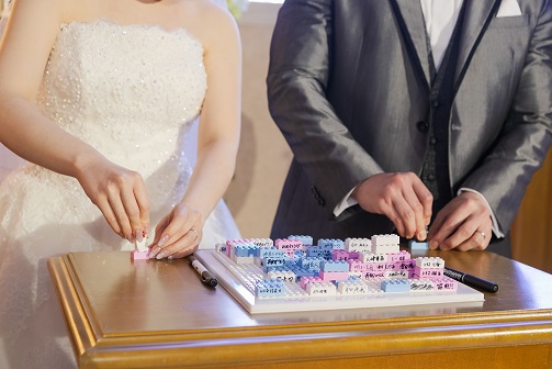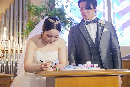 挙式にて新郎新婦様もブロックにお名前をご記入( ..)φ