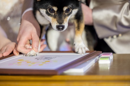 結婚証明書にはワンちゃんの肉球スタンプも添えて・・・