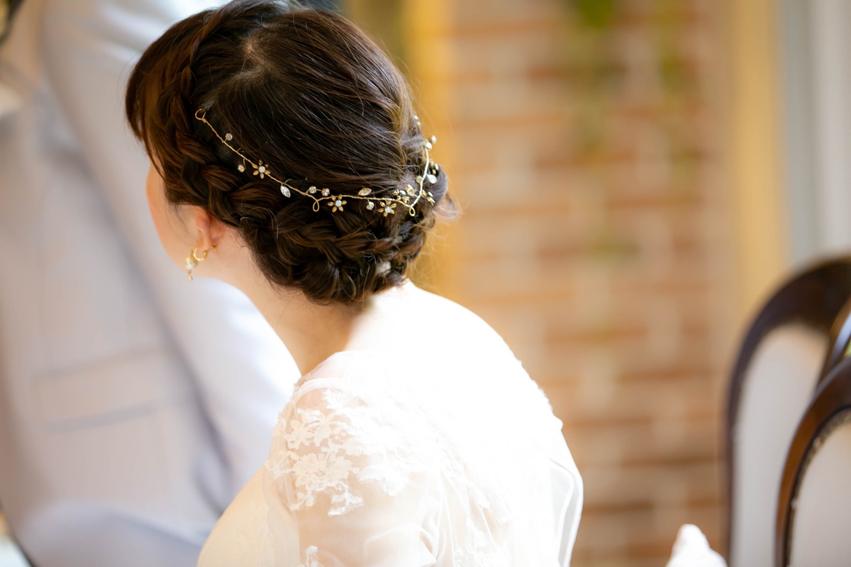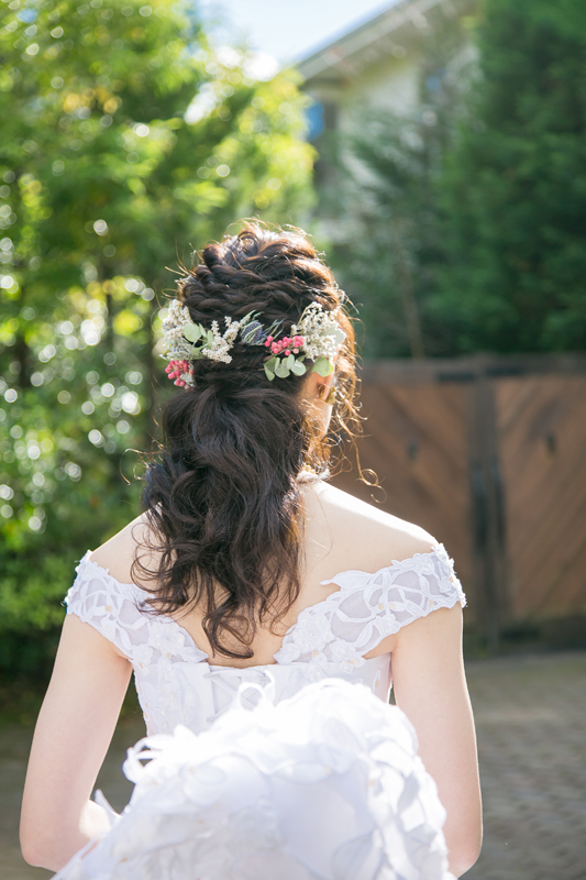 こんにちは! だんだんと暖かい日が増えてまいりましたね! 女性なら結婚式という憧れの1日を 素敵な姿で迎えたいと思われる方が多いのではないでしょうか* ドレスが1番気になるところだと思いますが、 ヘアスタイルも大事なポイントですよね! 王道スタイルのティアラはもちろん、 お写真のように生花を付けるのもとても可愛いです♪ また、挙式の際にはアップスタイルで パーティーに入られる際にダウンスタイルというのも 雰囲気が変わりゲストの方にも喜んでいただけますよ* 当日までにヘアスタイルを決められるかな・・・と悩まれる方も多いと思います。 ですが、当日までに美容のスタッフと実際にアレンジしながら ご相談するお時間がございますのでご安心くださいませ^^ お気に入りのスタイルをぜひ見つけて下さい♪