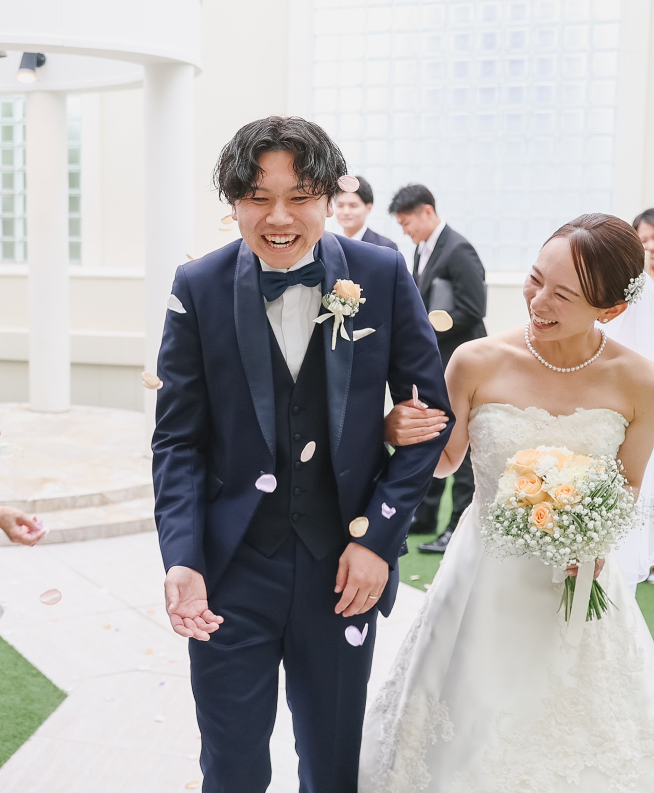 当日は雨予報もあり、外に出てフラワーシャワーができないかもしれないと思っていましたが、なんとか雨が降らず