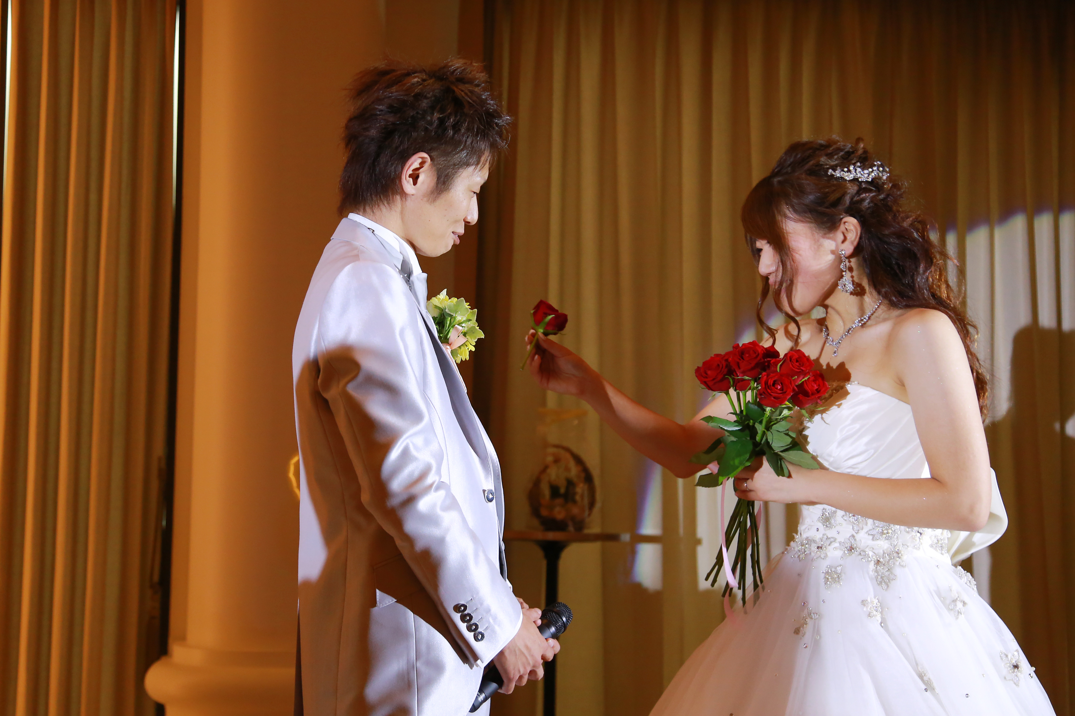 女性がOKであれば贈られた花束から引き抜いて男性の胸に挿します。これがブートニアの由来とされています。