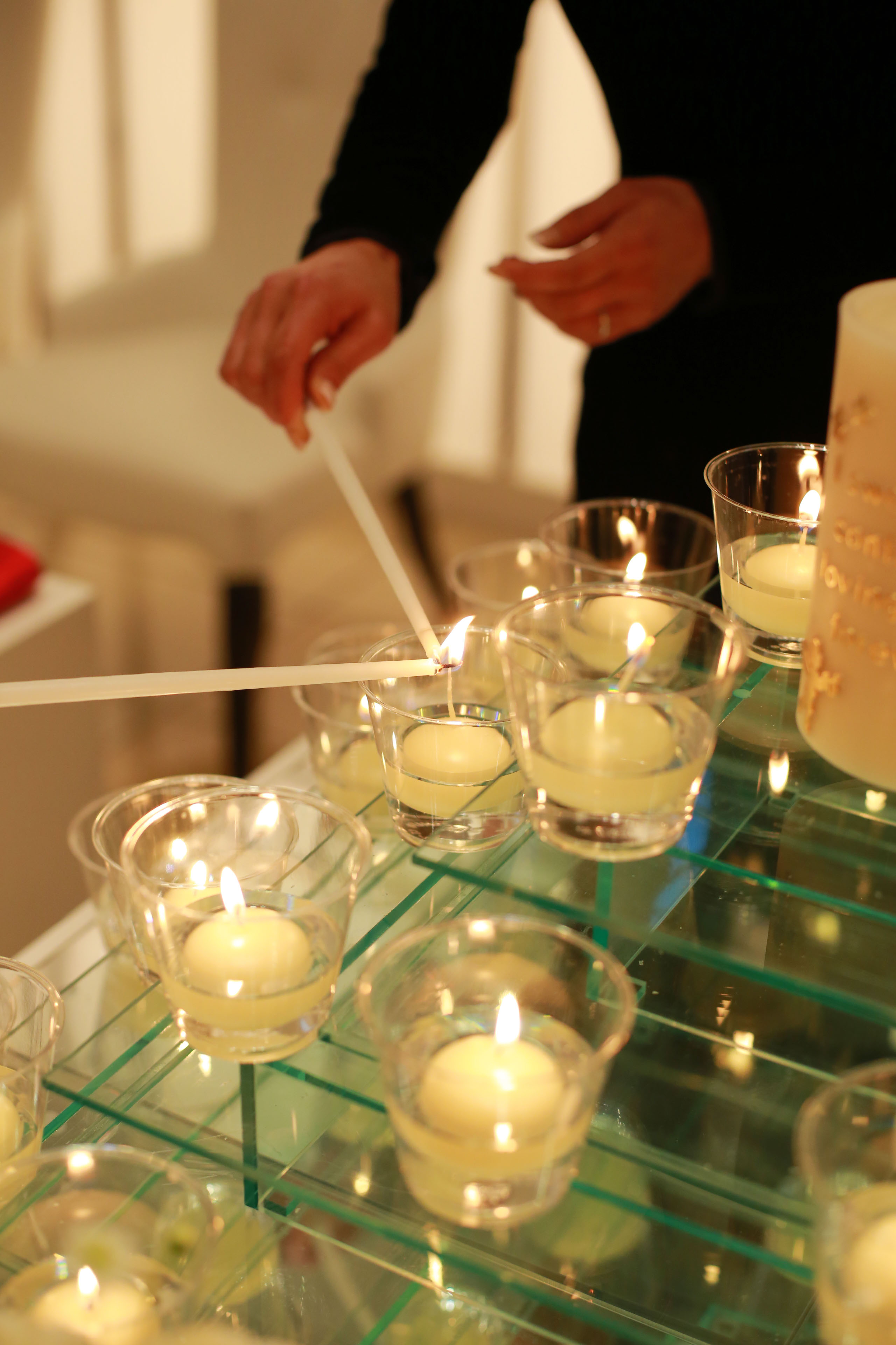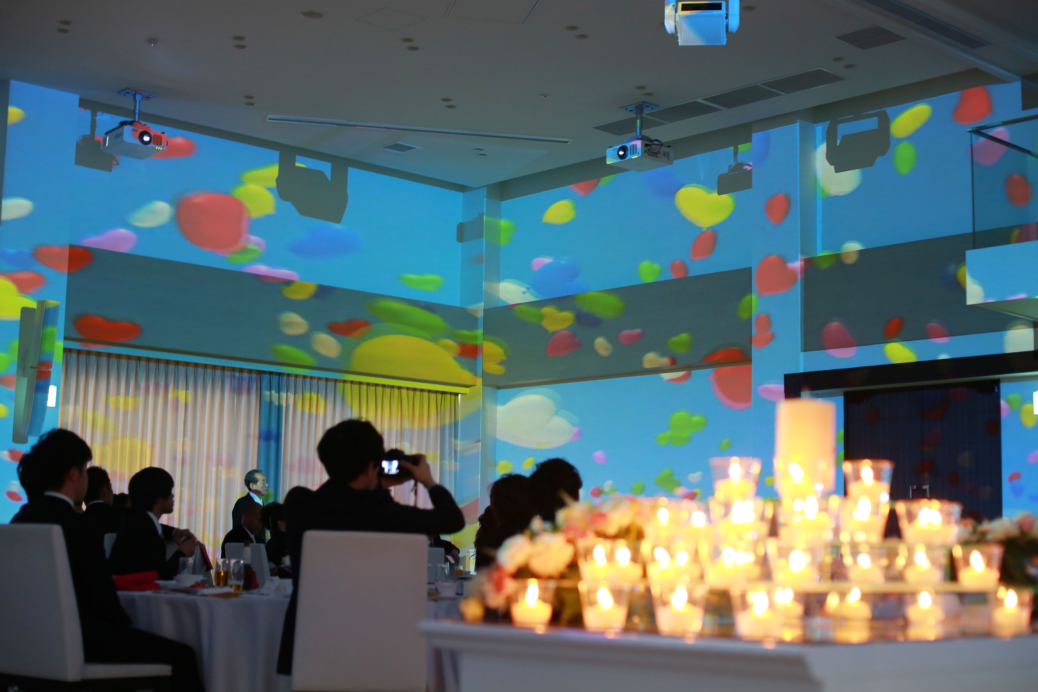 お祝いの気持ちが込められたサブキャンドルが輝く厳かな雰囲気の中