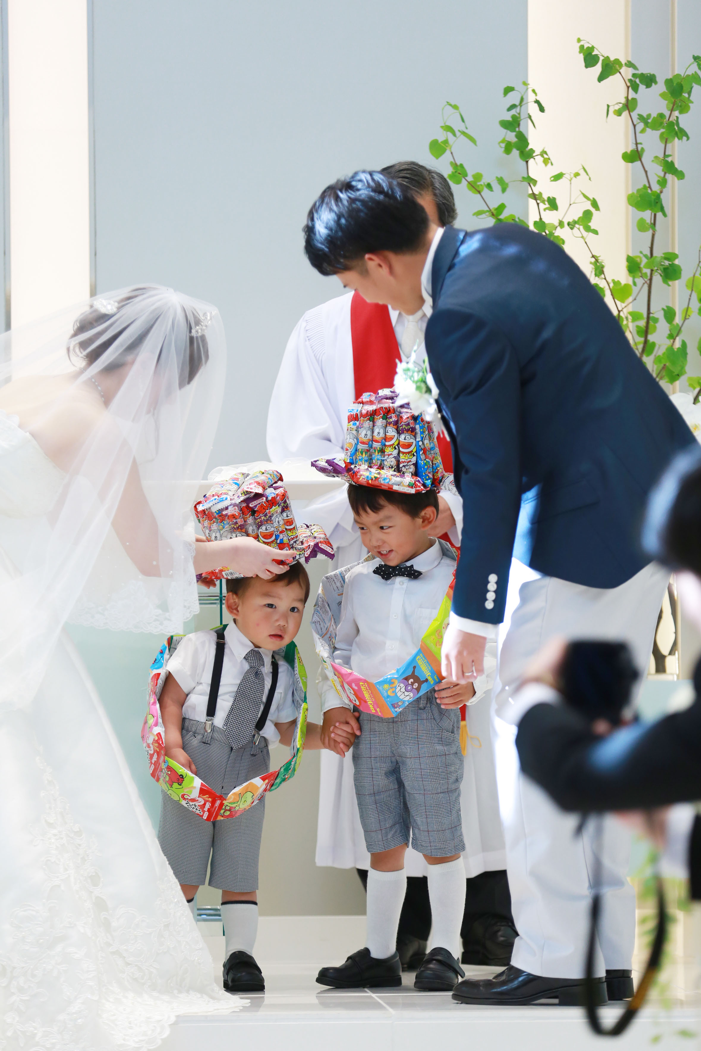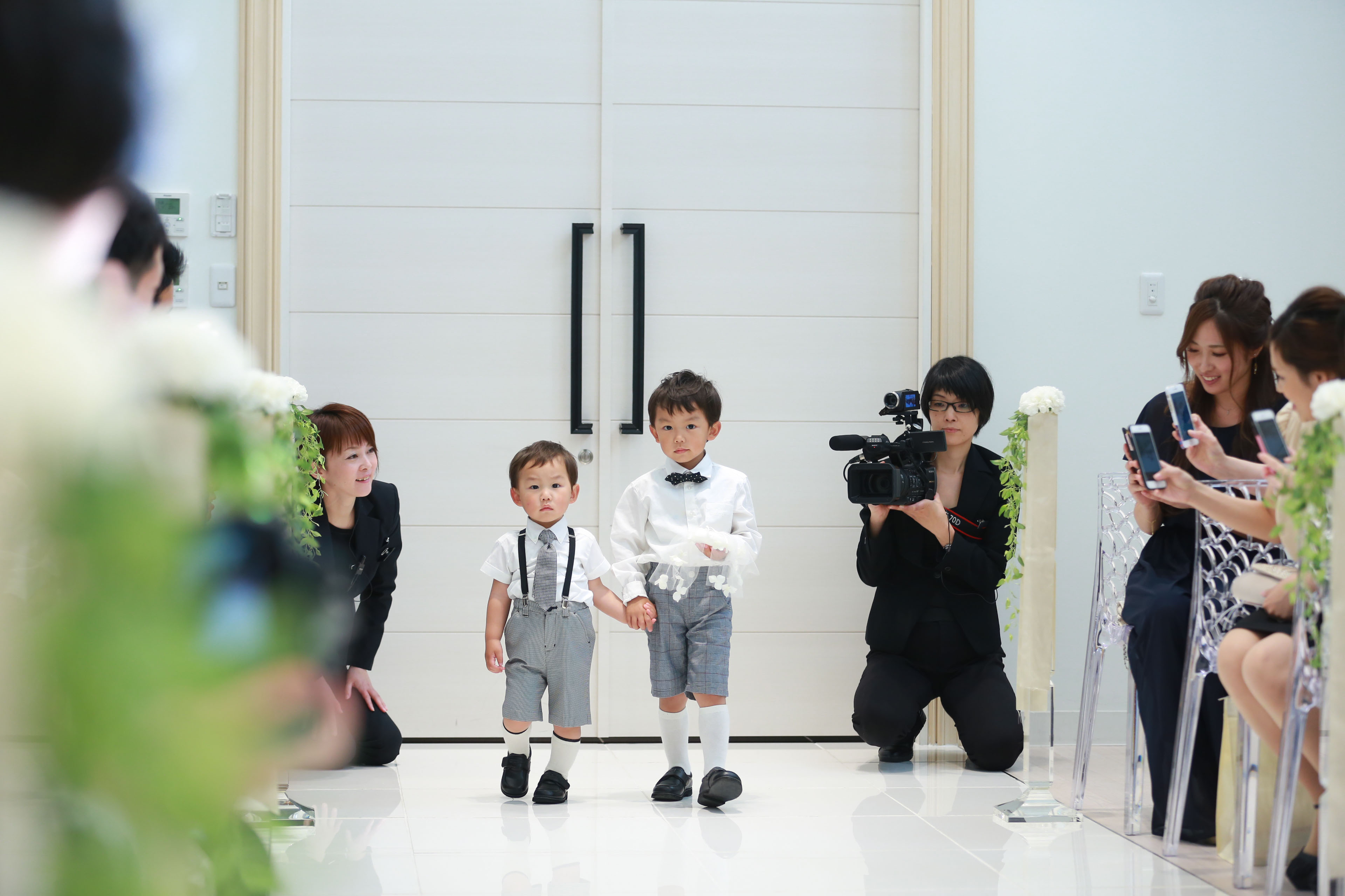 挙式では、新郎様の甥っ子さんお二人が立派にリングボーイを
