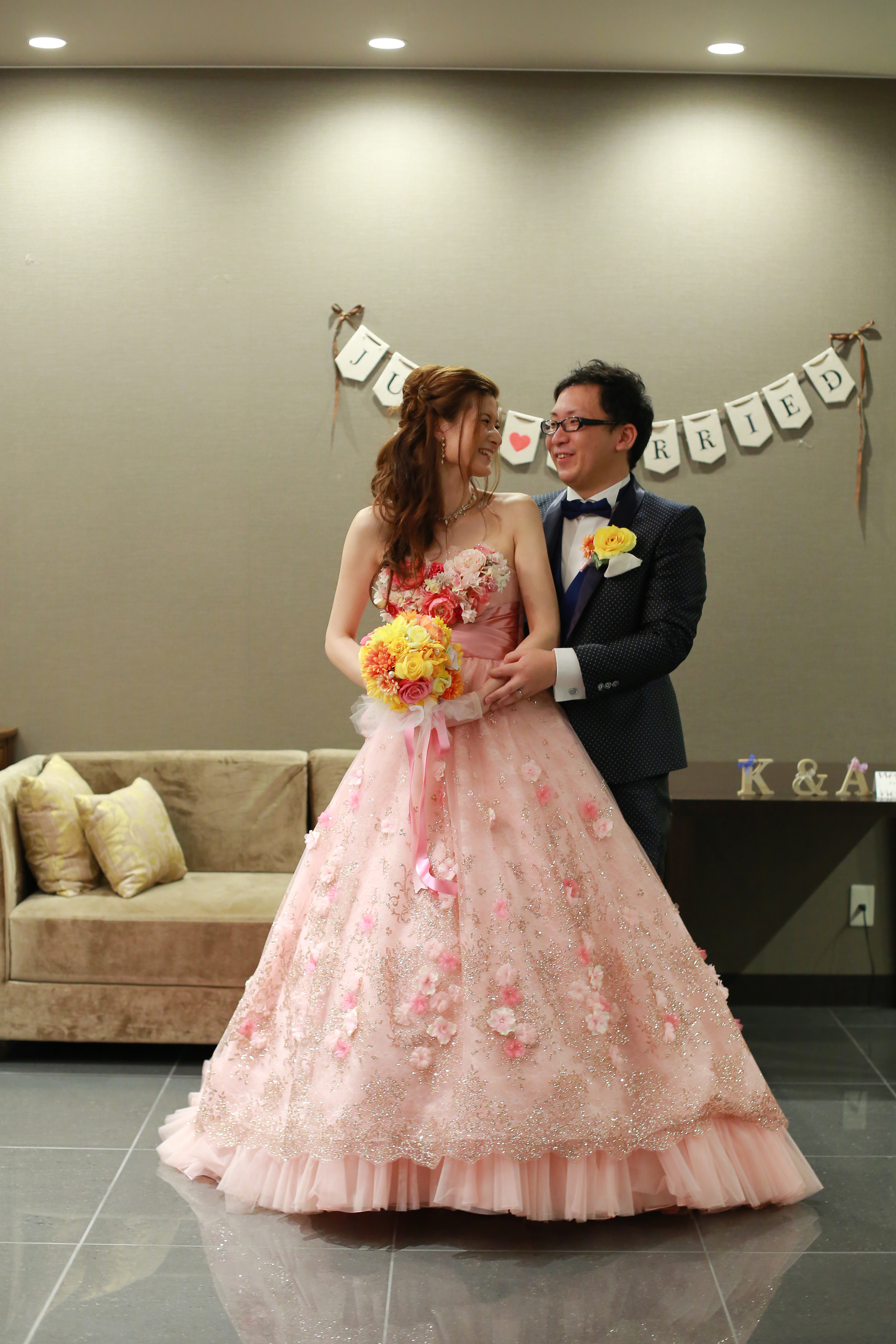 新婦様のドレスと新郎様のタキシードの組み合わせをあててもらう