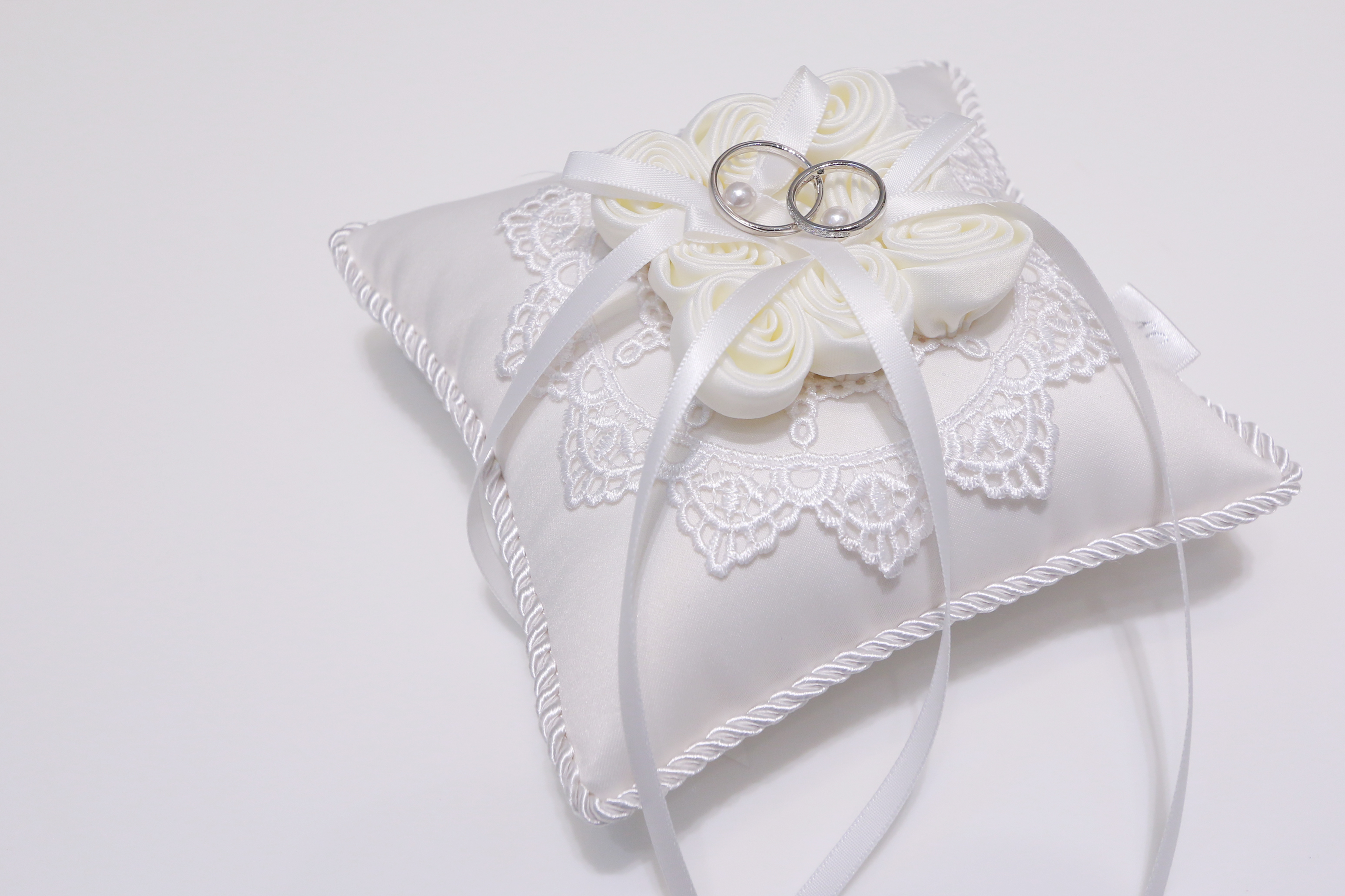 結婚式の際、結婚指輪を置くために使われるリングピローですが