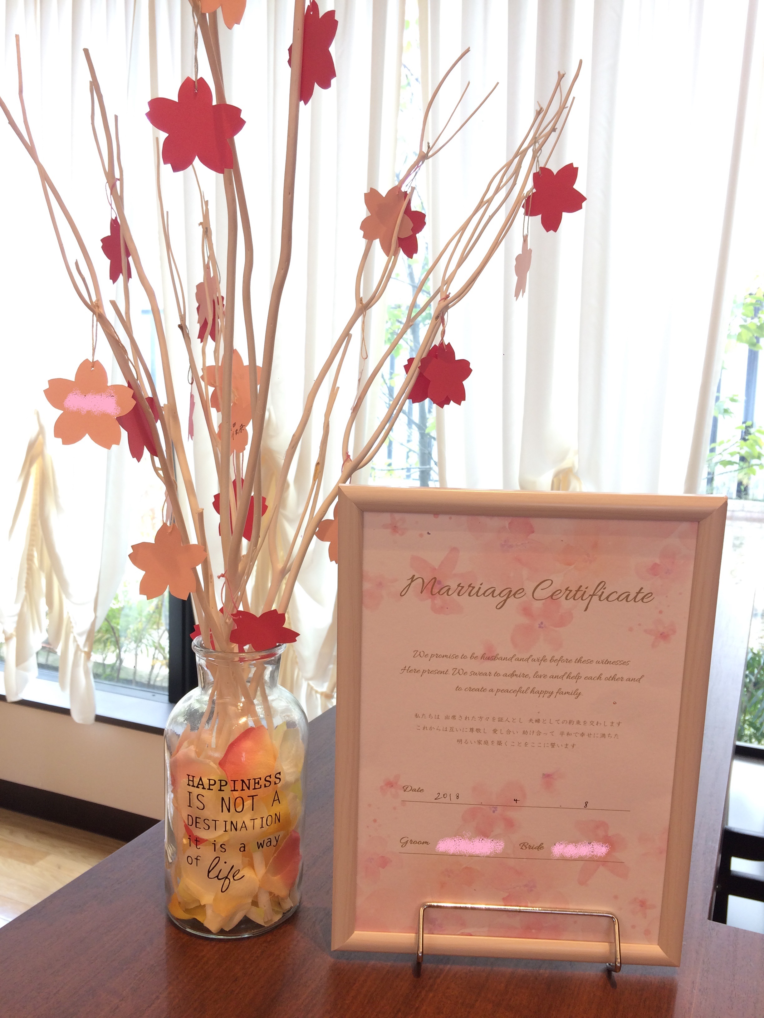 模擬人前式では、桜のウエディングツリーを完成していただきました♫