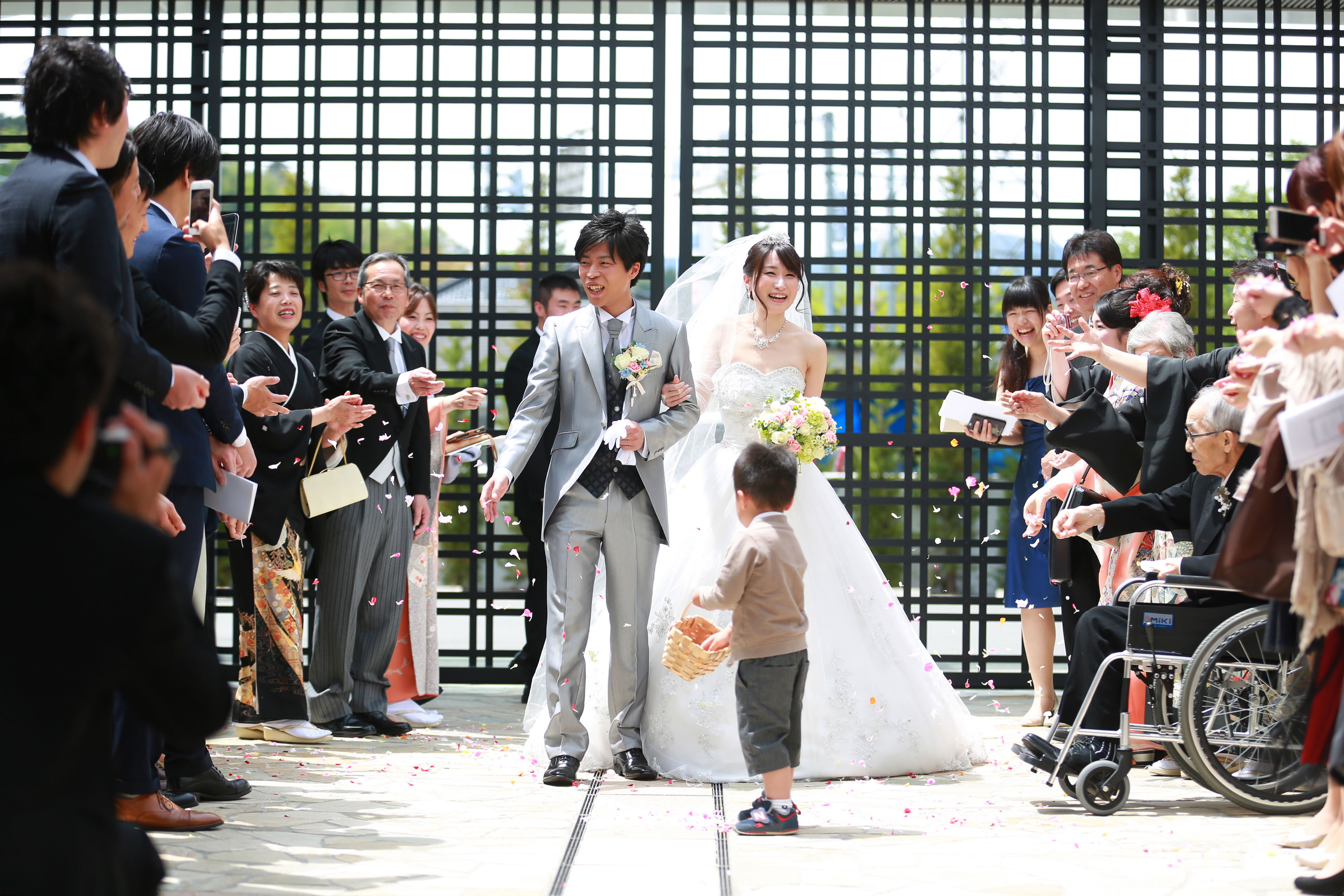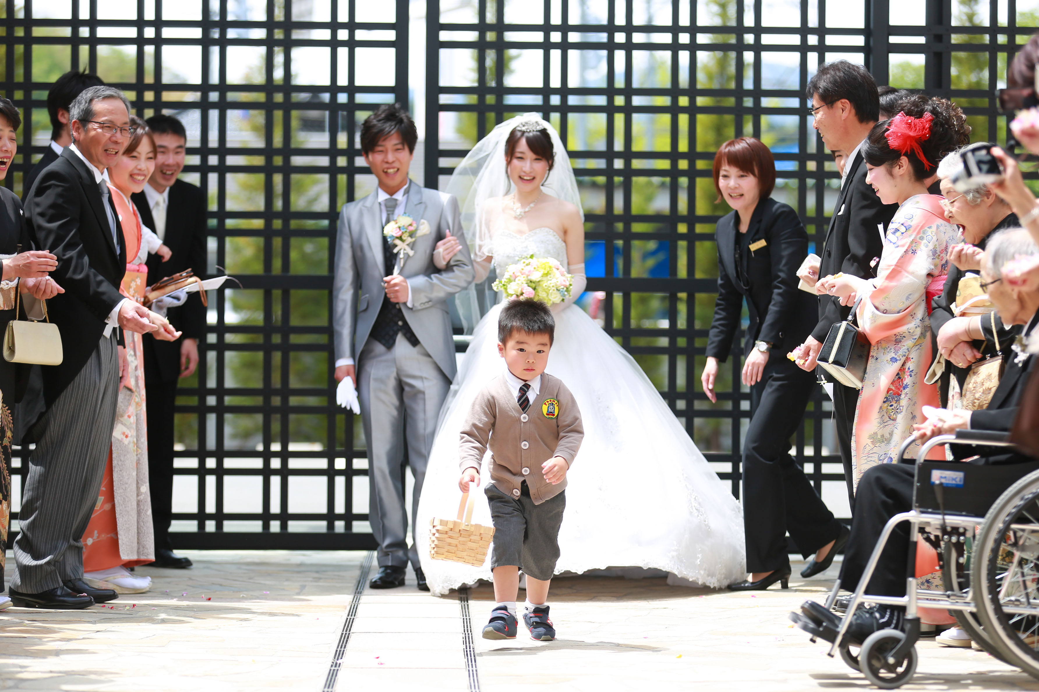 定番はフラワーシャワーですが、お子様におふたりの先導をお願いすれば