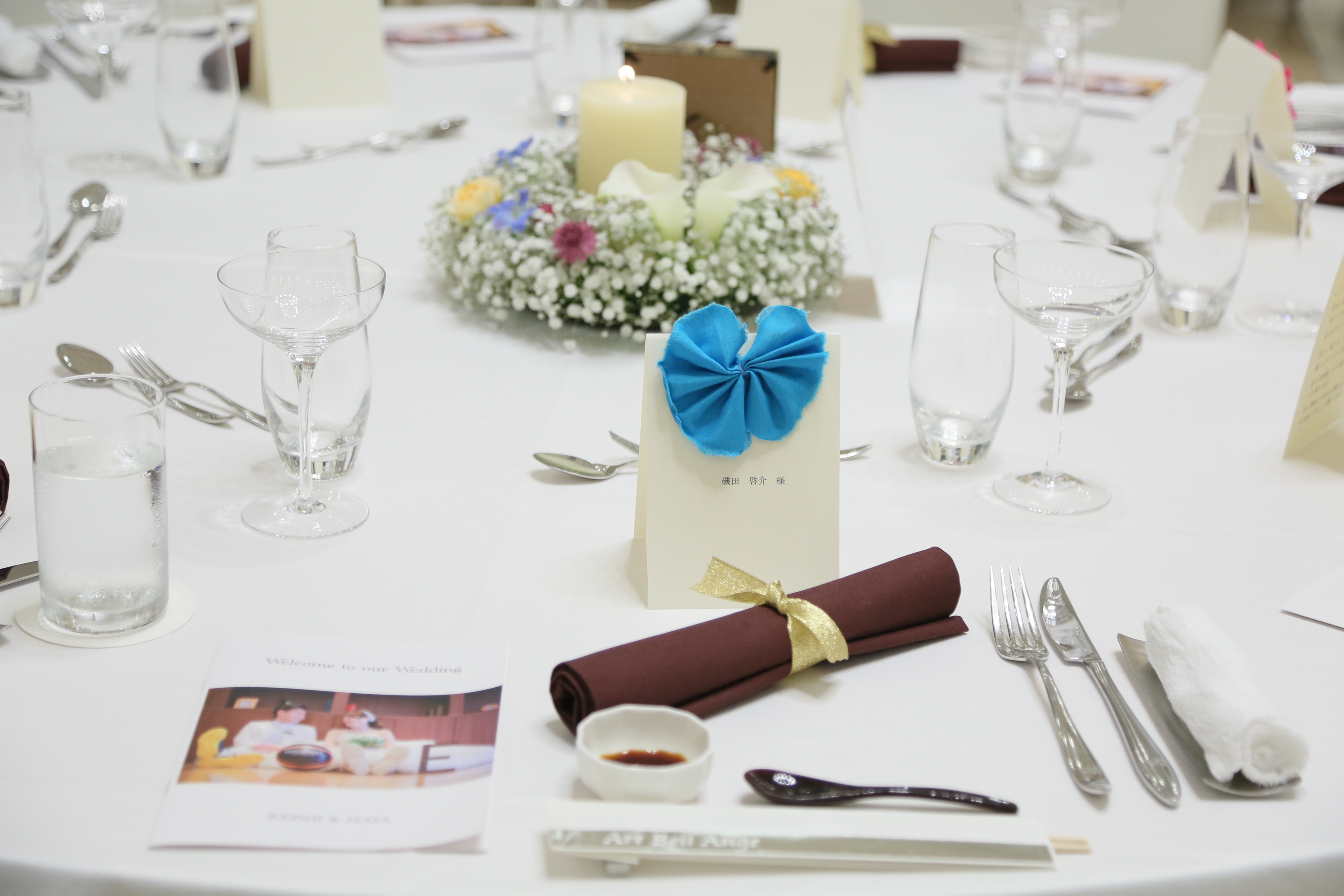 お一人お一人への席札も可愛らしいリボン付き(*^^*)