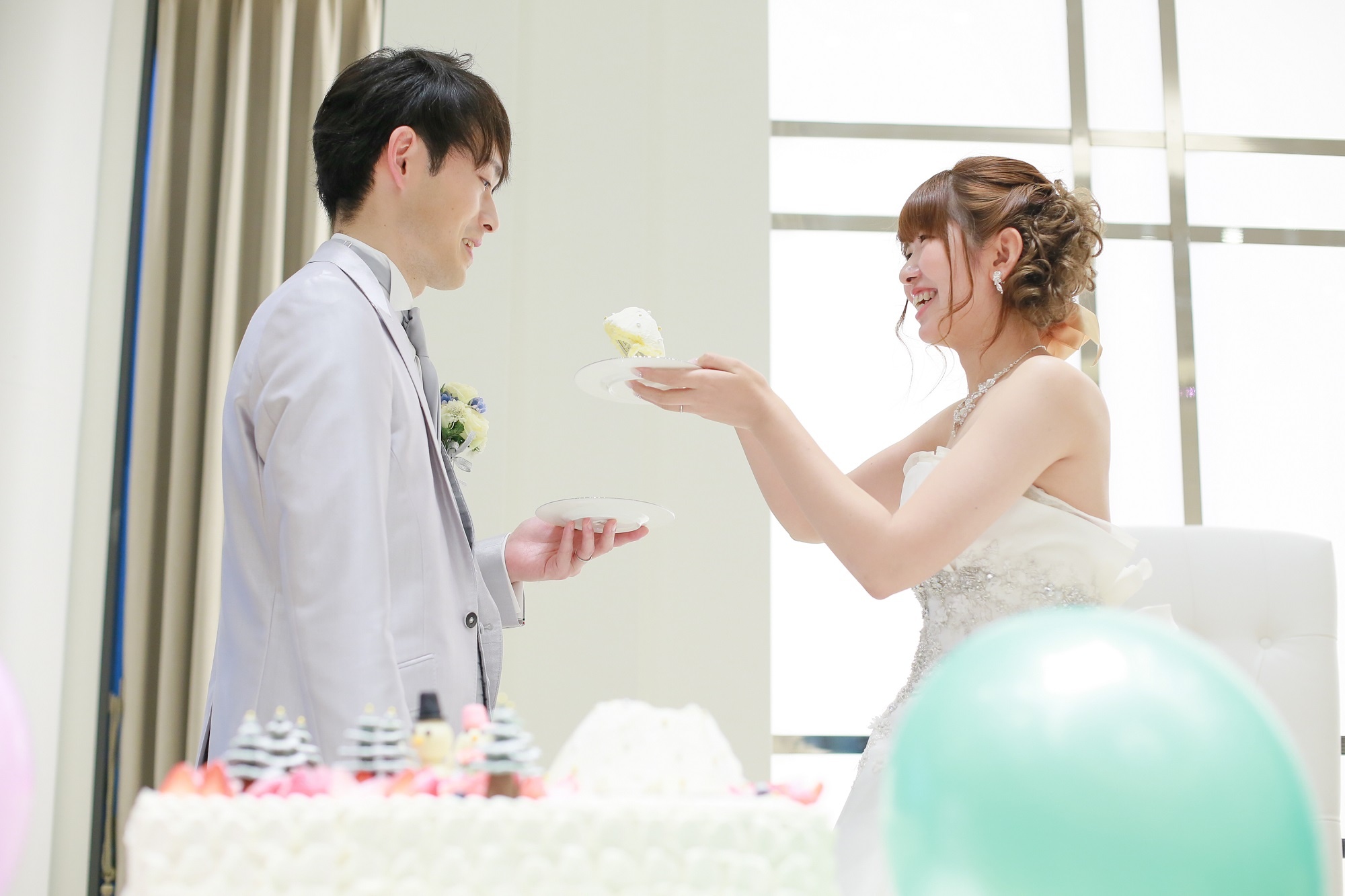 ファーストバイトは新郎新婦様がお互いにケーキを食べさせ合う演出です。