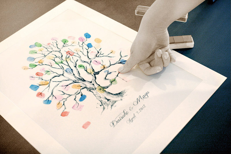 メモリアルボードとは、受付でゲストの皆様にふたりへの祝福の言葉を記入していただき