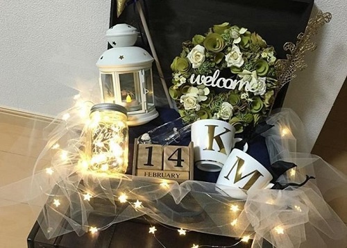 ドライフラワーやフォトフレームやガラススポットなど好きなものを詰め込んで