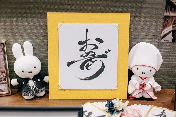 新婦様の妹様が書かれた「おめでとう」と「寿」の掛け合わせ(^_^)