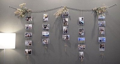 ふたりの思い出をぎゅっと集めた素敵な壁です。