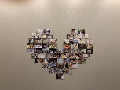 写真は、お二人やゲストの皆さまとの想い出の写真で作ったハート型のアート