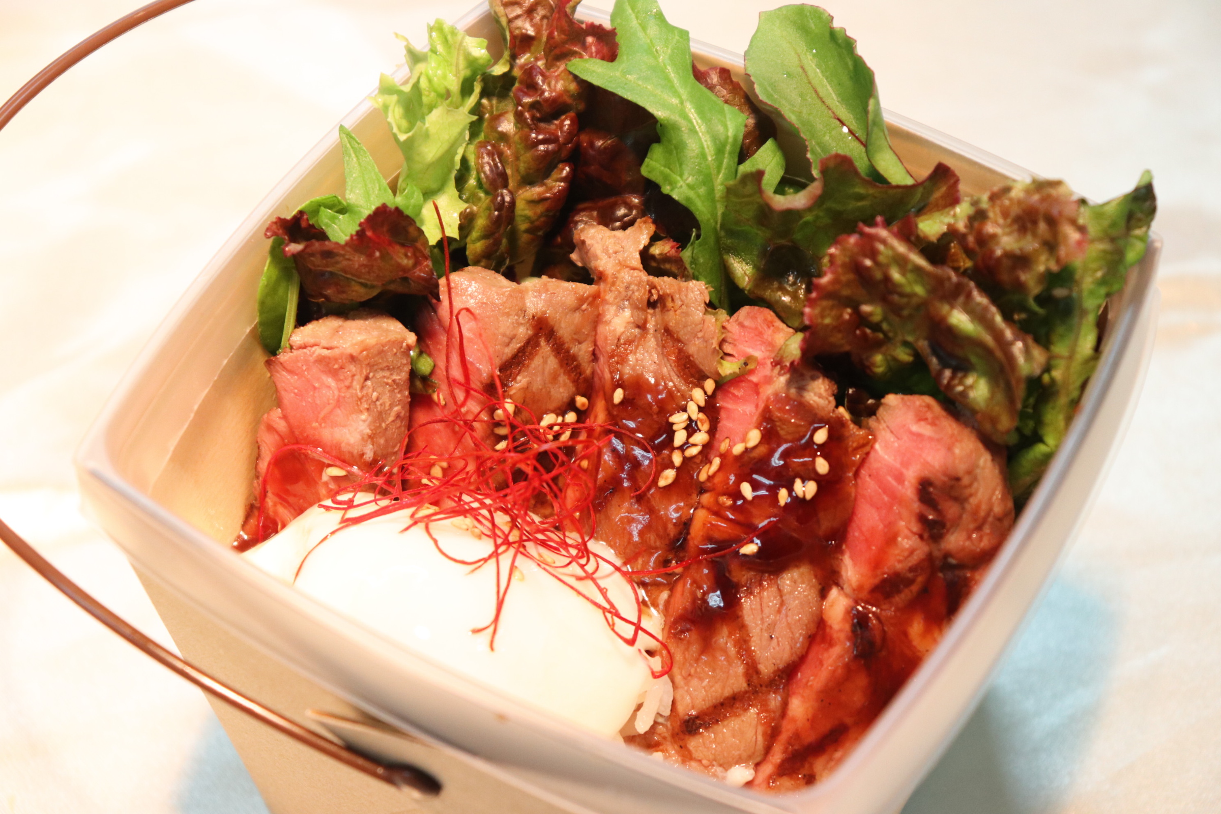 オープンから変わらず一番人気なのがこの〈温玉ステーキBOX〉なんです♪