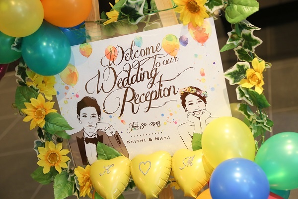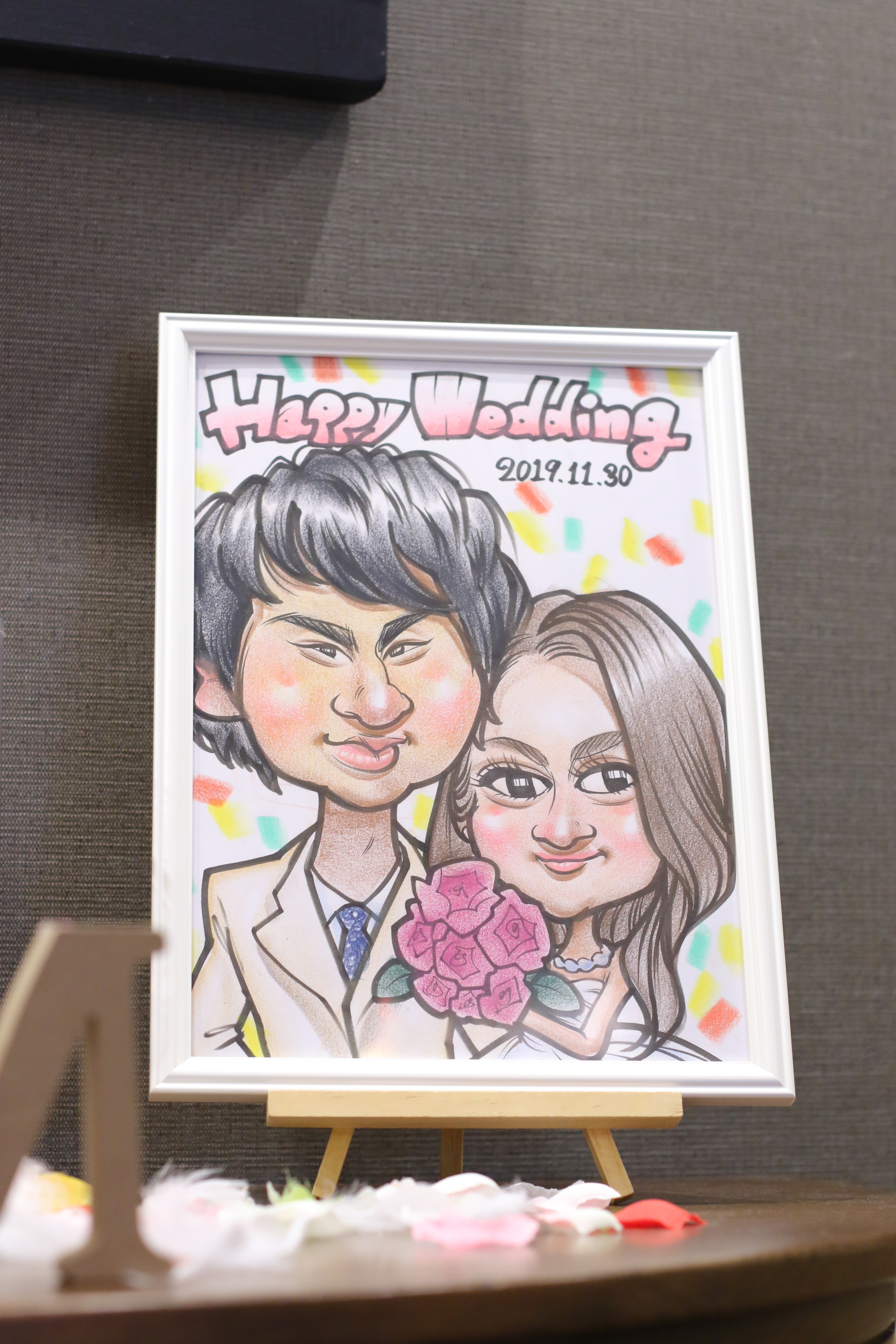 新郎新婦の似顔絵が書かれたウェルカムボード✨