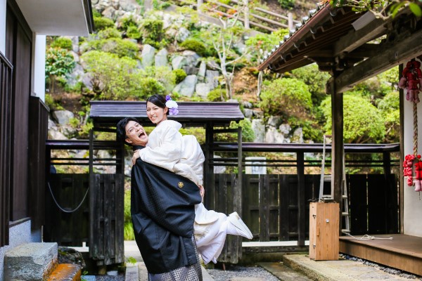 重たい着物ごと持ち上げるので、新郎様はすこーし大変ですが素敵な写真が取れますよ*