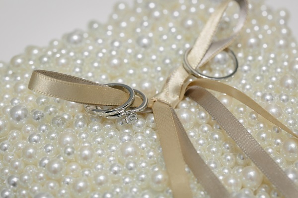 「二人の愛の約束」という意味が生まれリングピローにリボンが付くデザインが一般的になったと言われています☆