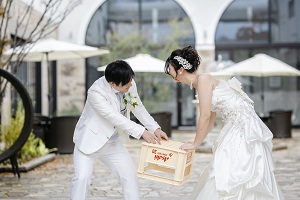 前撮り撮影では、当日には使用できないアイテムを使用して