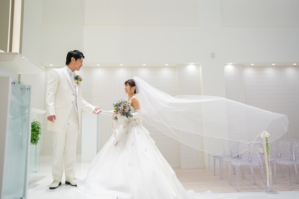 また、ベールには長さやデザインにも様々種類があり、ロングベール(ドレスの裾と同じくらいの長さがあるベール)は