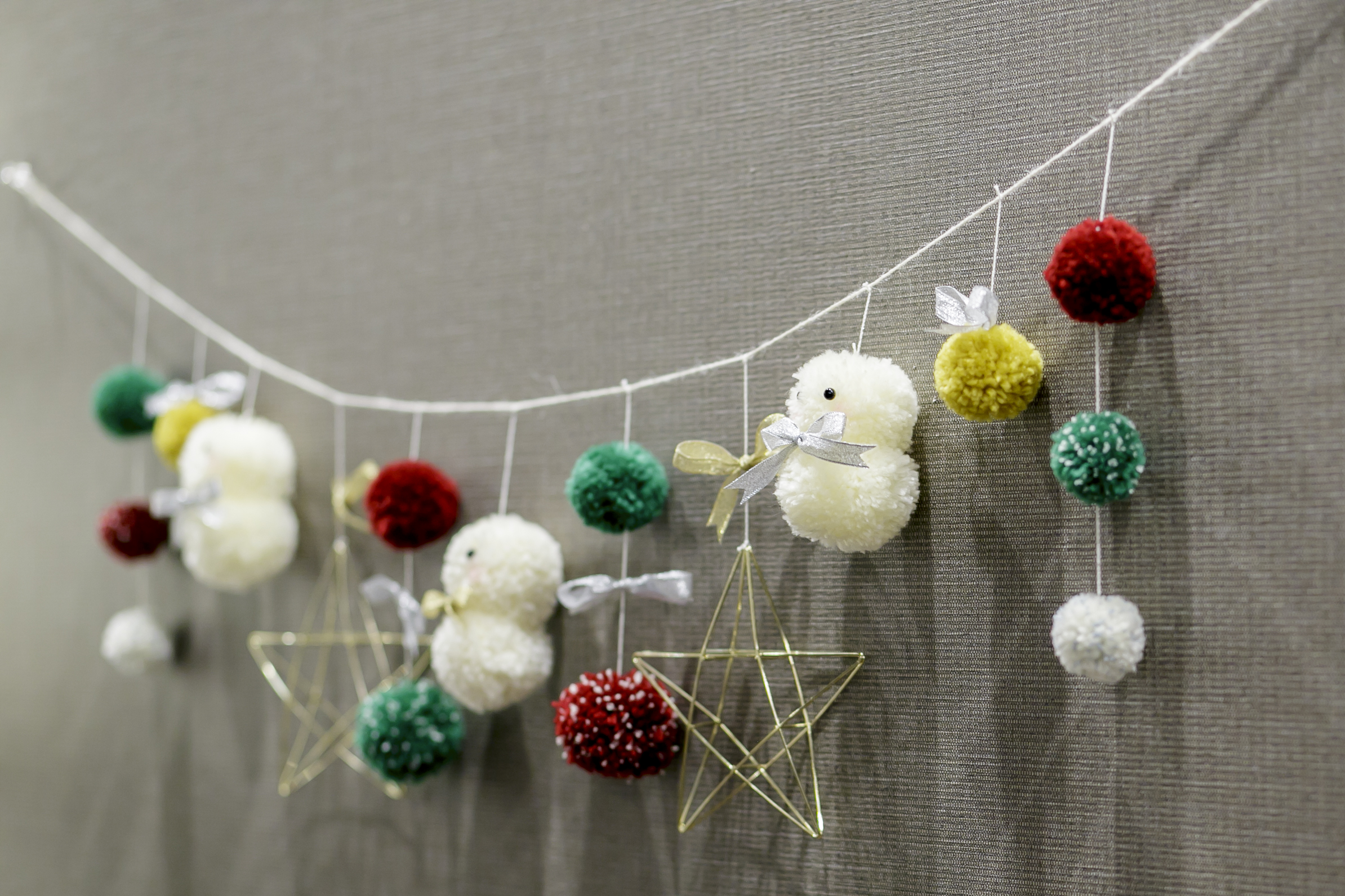 毛糸を使ったクリスマス仕様のガーランド☆
