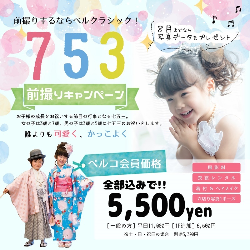 ベルクラシック小倉の七五三 前撮りキャンペーン !!