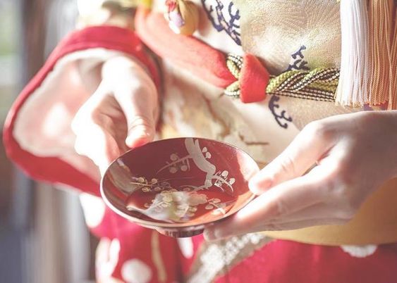 中の盃は現在を意味しており二人力を合わせて末永く生きていく