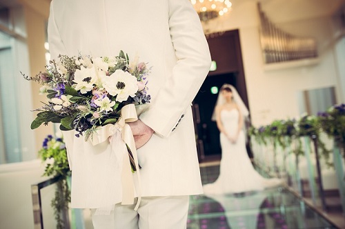 そのあとにご入場されてくるご新婦にプロポーズの言葉と共に花束を渡して、ブートニアを胸元に挿してもらう。と、いう演出が多いかと思います。