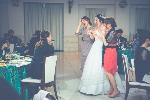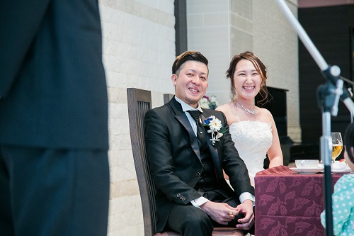 友人スピーチにほっこり笑うお2人の笑顔は恥ずかしそうに楽しそうに笑ってました