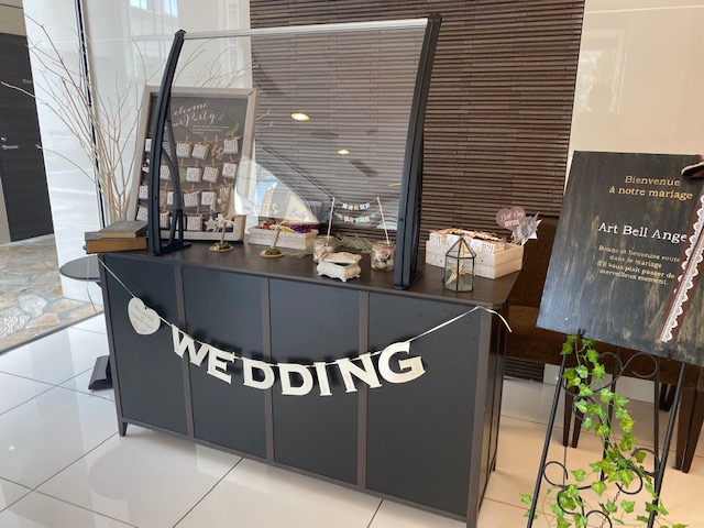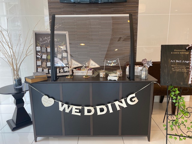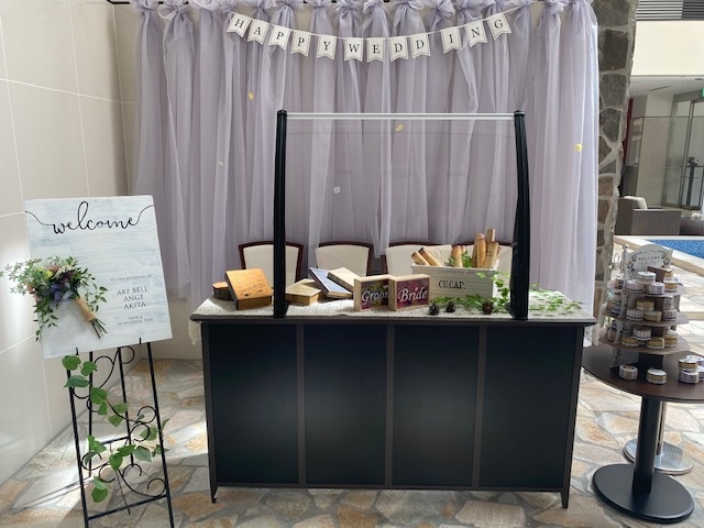 アールベルアンジェ秋田でもご結婚式の受付にヒサシールドをご用意いたしました。
