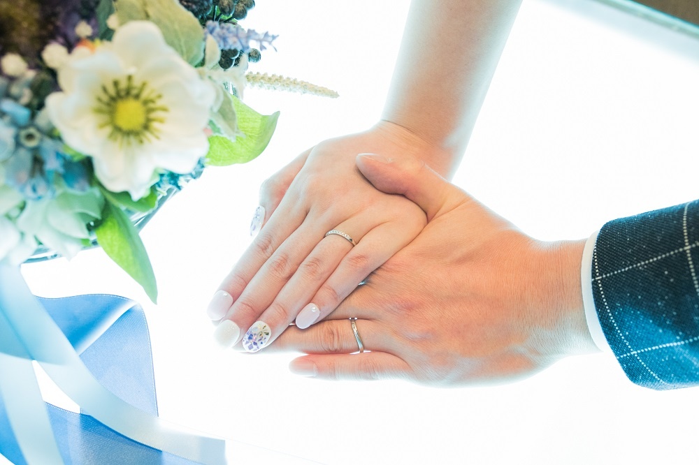 ふたりの指先を重ねてカメラマンが上手に撮影してくれます。