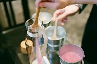 様々な色の砂を 一つの容器に入れる