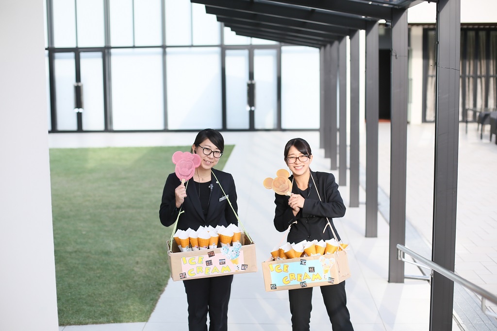 お写真の方はフラワーシャワーをアイスクリームの売り子として