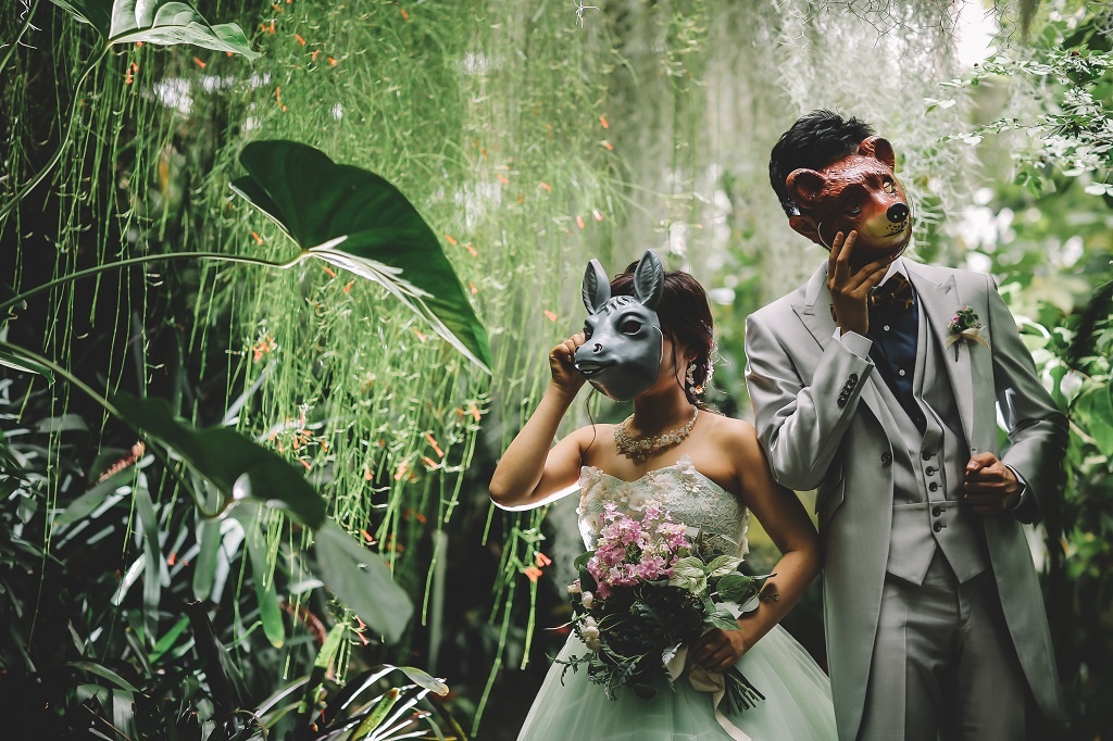動物のお面をかぶって可愛くも違った雰囲気でも