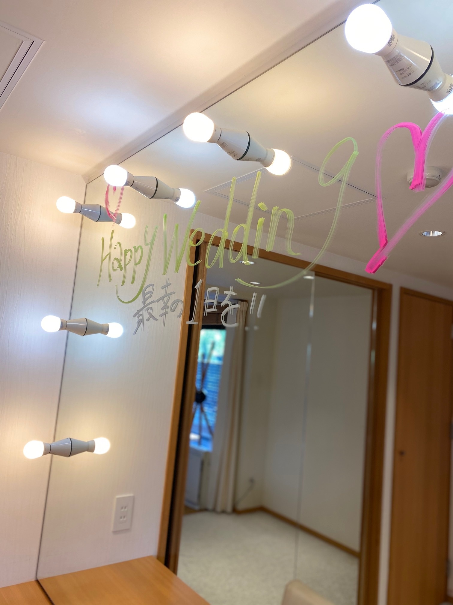 ガーデンテラス東山のブライズルームにはとっても大きな鏡があるので