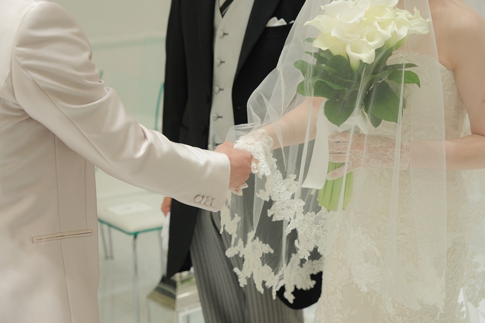 緊張した面持ちの新郎新婦様をゲストの皆さまが