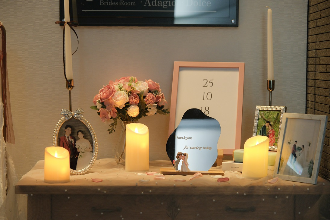 当式場には画像のようにメインのウェルカムスペースの他にウェルカムグッズを置く場所がたくさんございます◎