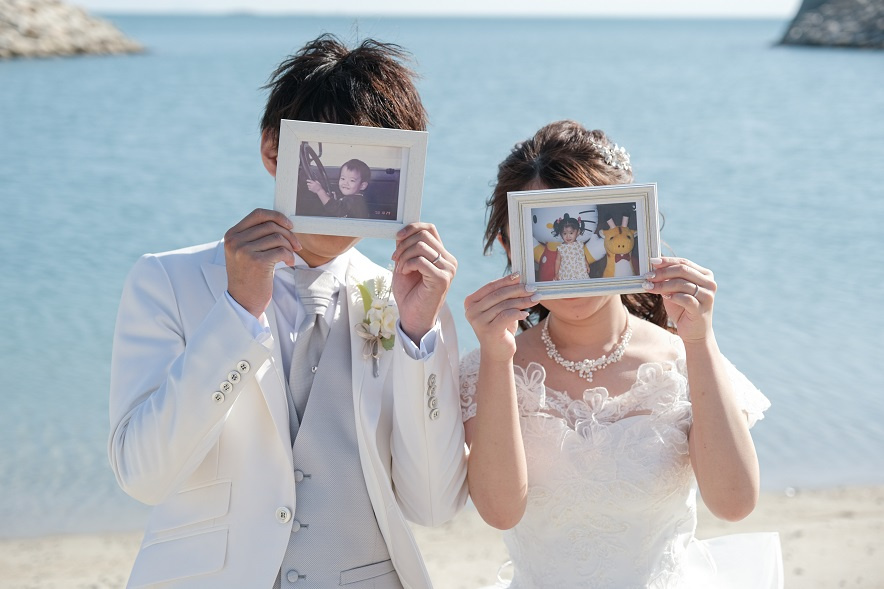 前撮りで使用したお写真を使って当日披露宴で流す動画を作成することをイメージして