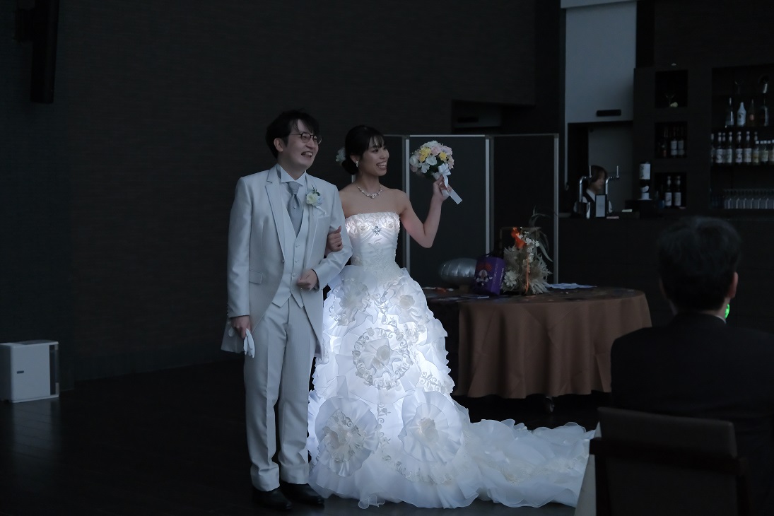 そして披露宴の見どころの一つとしてLEDパニエを付けての入場!