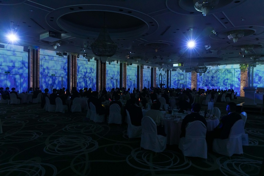 当館の披露宴会場である「クリスタルダイヤモンド」で、プロジェクションマッピングの演出がありました