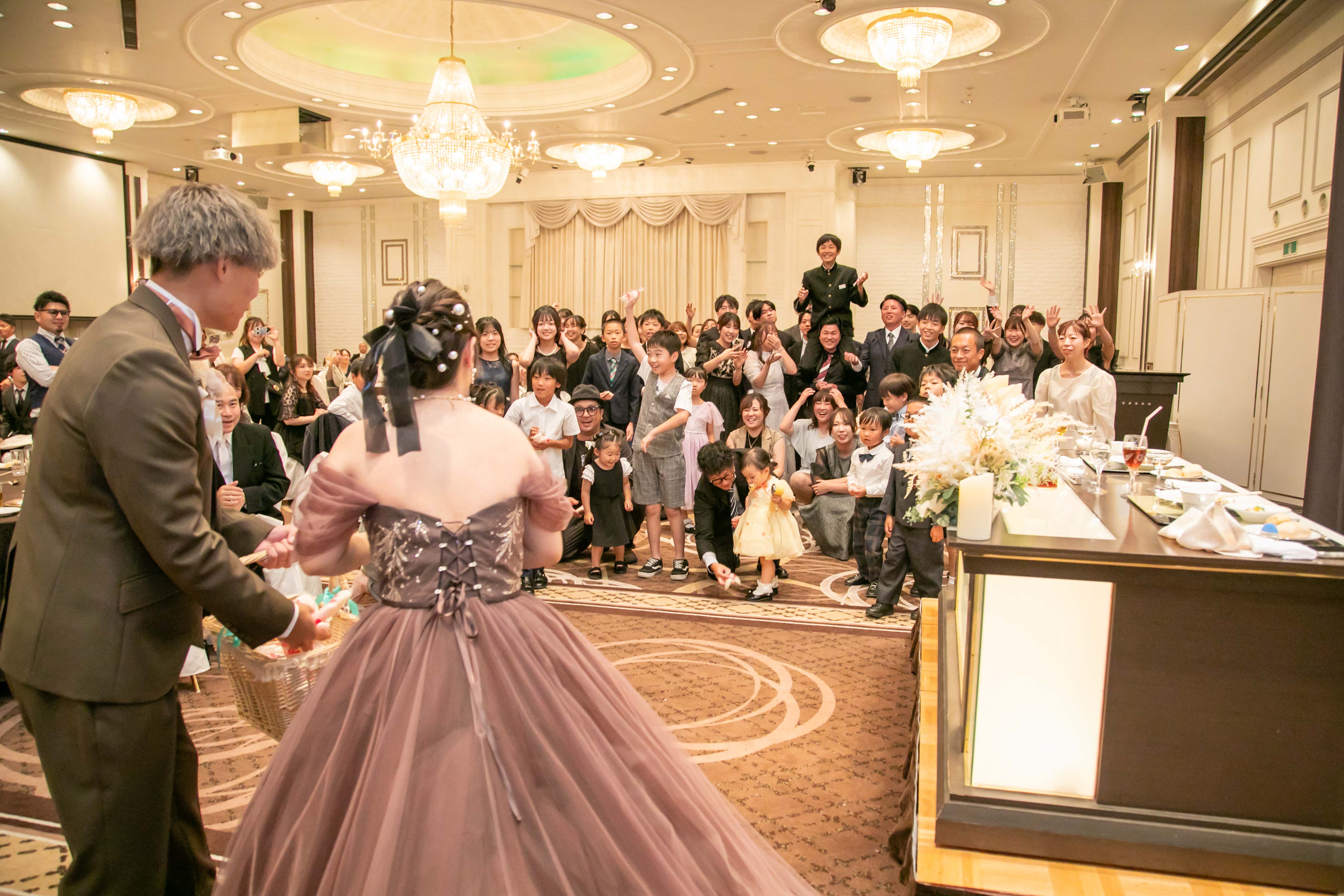 お菓子まき等沢山のゲストと楽しむおふたり♡