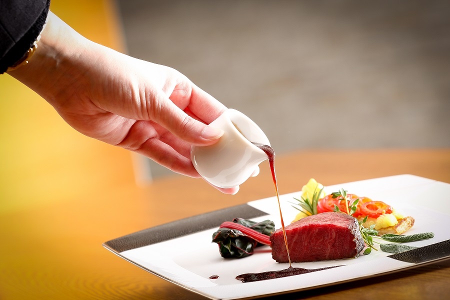 ご提供の際に添えられたソースをゲスト自身におかけいただき完成いたします。