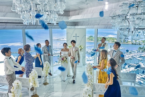 HAWAIのイリカイホテル最上階での海が一望できるチャペルです!!