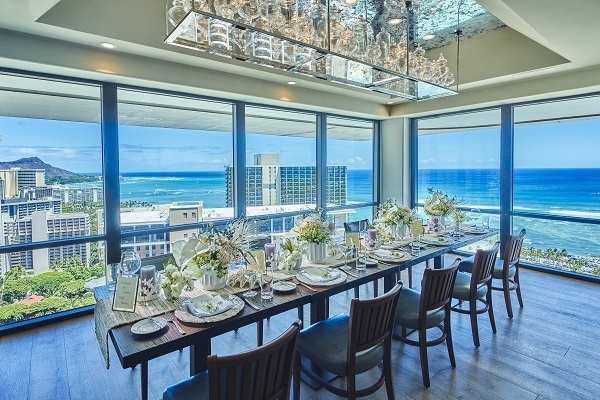 ペスカというレストランにて特別貸切ルームにて海を一望しながらお食事できるようになっています♪