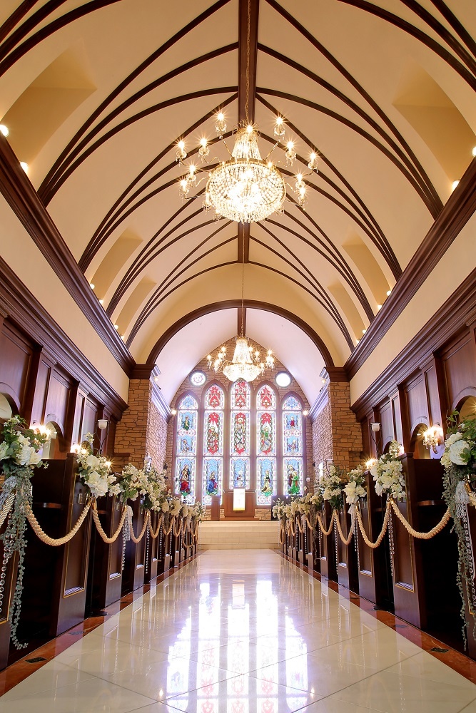 綺麗なステンドグラスから差し込む光が、皆様の結婚式を綺麗に、感動的に