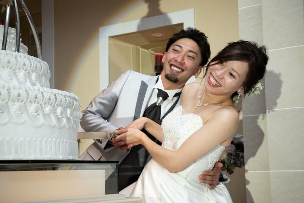 ケーキ入刀には、結婚を祝福してくれるゲストに幸せをおすそ分けするという