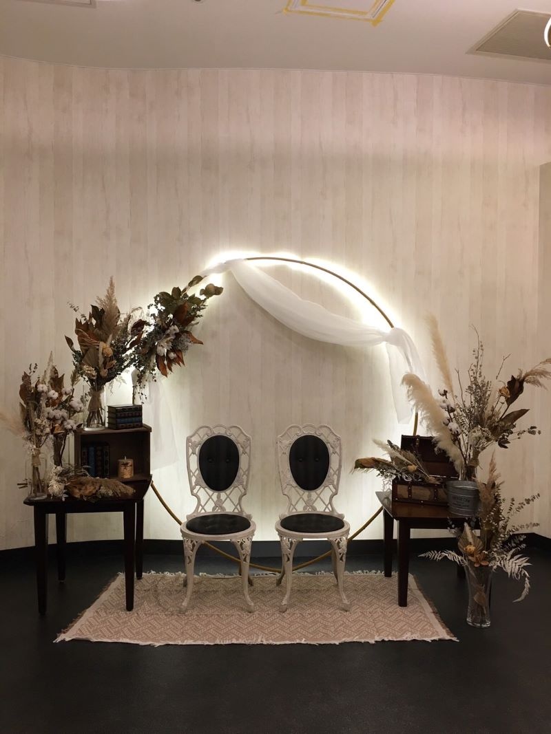 ライトアップされた素敵な背景でお写真をお撮りさせていただきました。