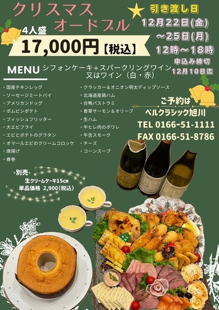 ベルクラシック旭川ではクリスマスオードブルのご予約を承っております!