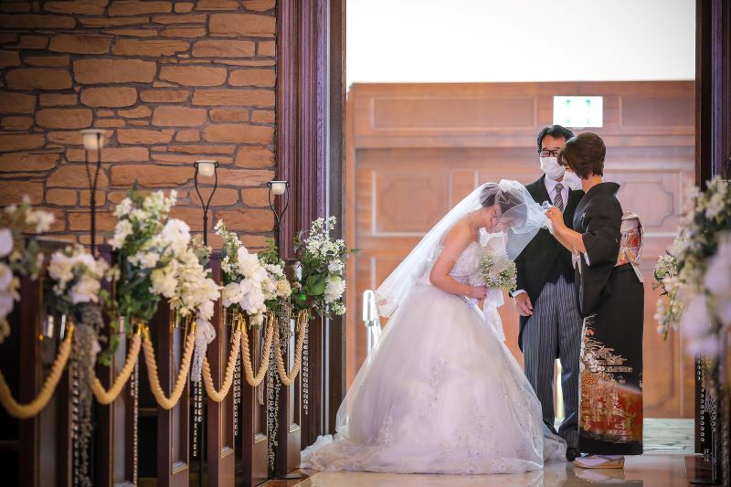 大切なセレモニーのひとつであるお母様からのベールダウン。